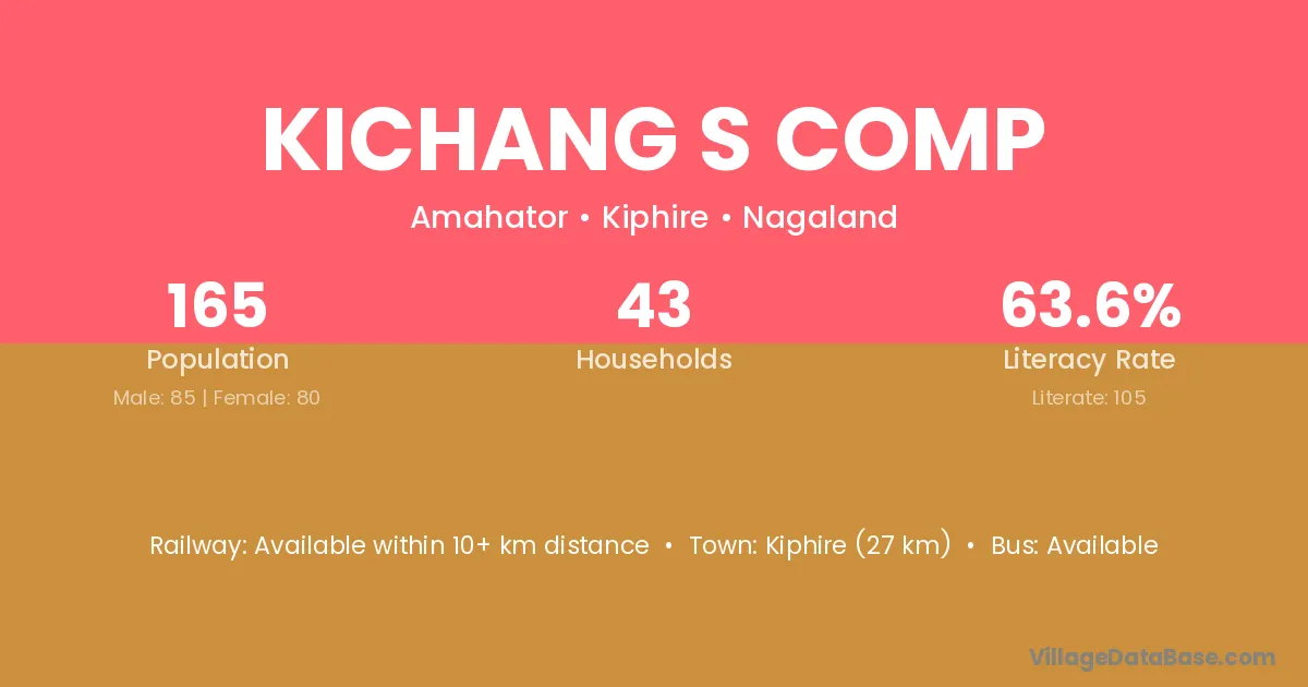 Kichang S Comp village has a total population of 165 people, of which 85 are males and 80 are females.