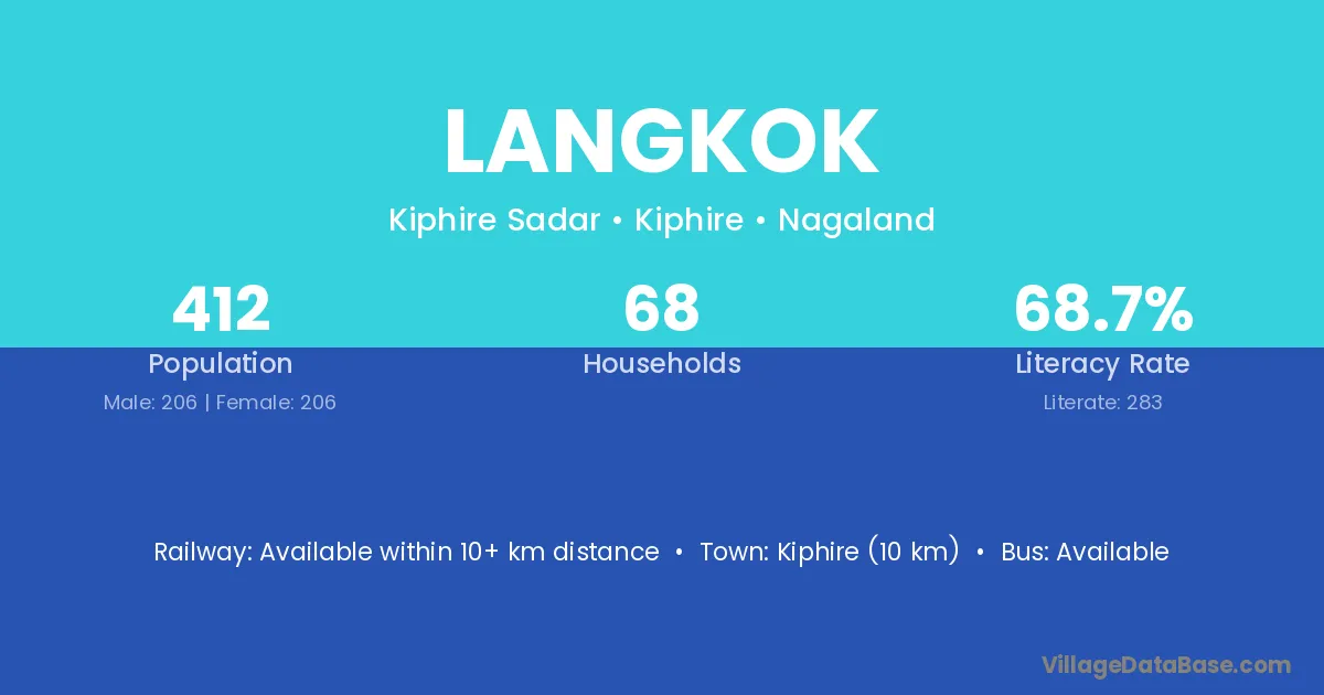 Kiphire (10 km) is the nearest town to Langkok village for major economic activities and is located approximately 10 km away.