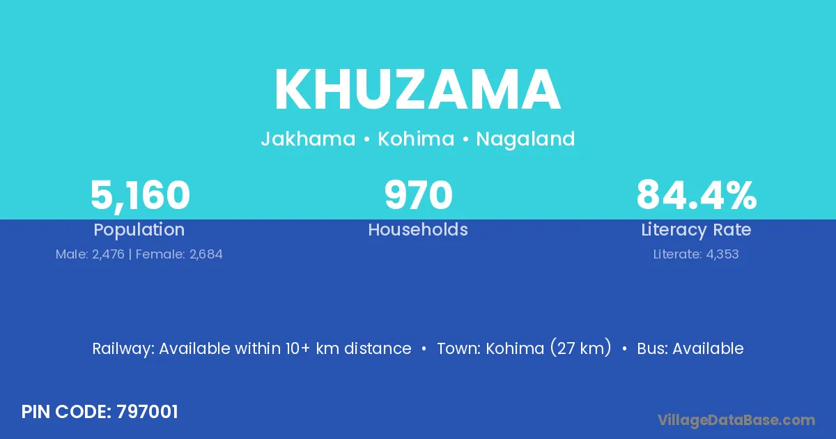 According to Census 2011 information, the village code of Khuzama village is 797001.