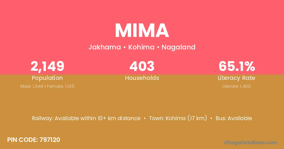 Kohima (17 km) is the nearest town to Mima village for major economic activities and is located approximately 17 km away.