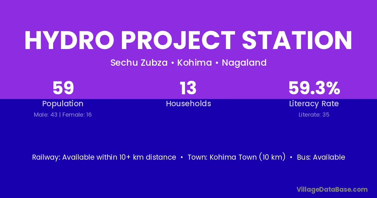 Hydro Project Station village has a total population of 59 people, of which 43 are males and 16 are females.