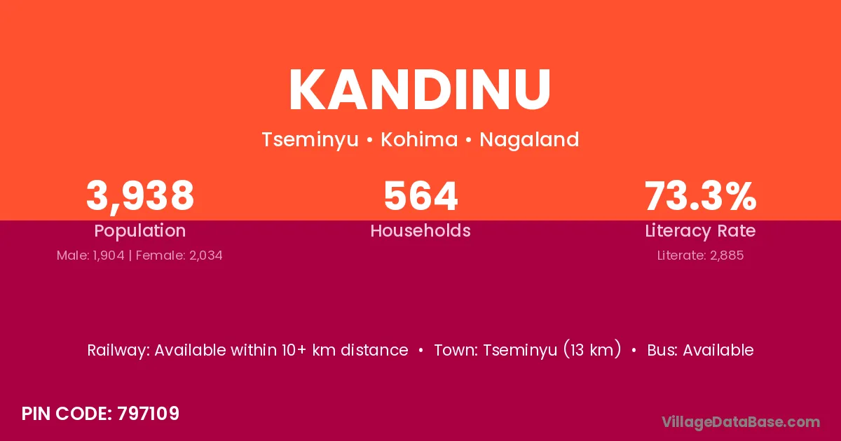 Kandinu village has a total population of 3,938 people, of which 1,904 are males and 2,034 are females.