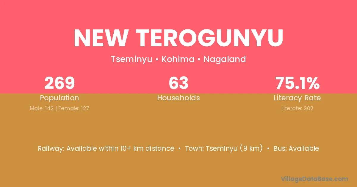 New Terogunyu village has a total population of 269 people, of which 142 are males and 127 are females.