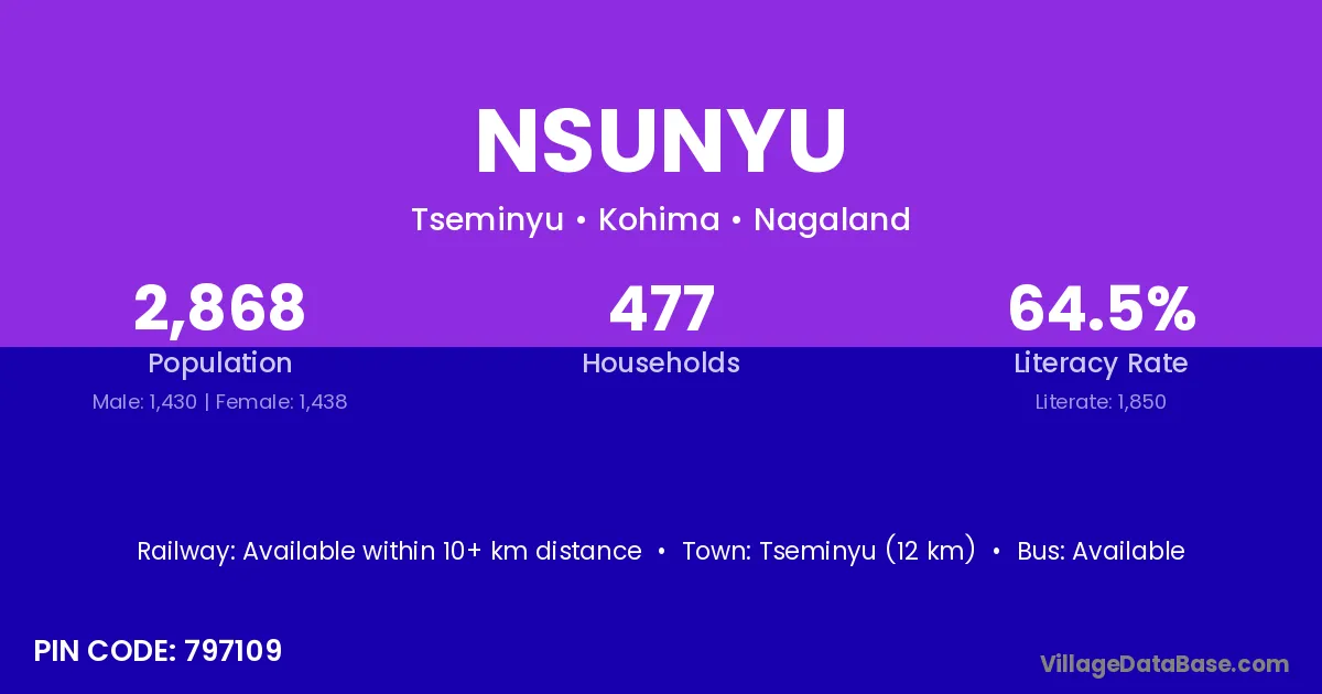 According to Census 2011 information, the village code of Nsunyu village is 797109.