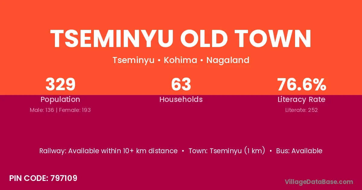 Tseminyu Old Town village has a total population of 329 people, of which 136 are males and 193 are females.