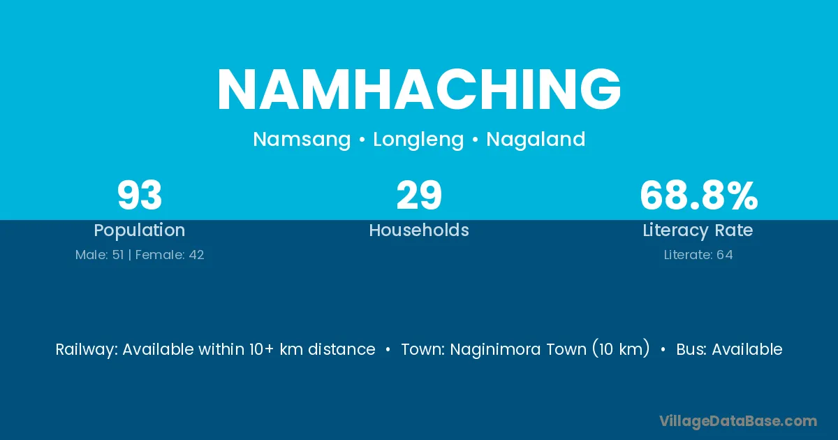 Namhaching village has a total population of 93 people, of which 51 are males and 42 are females.