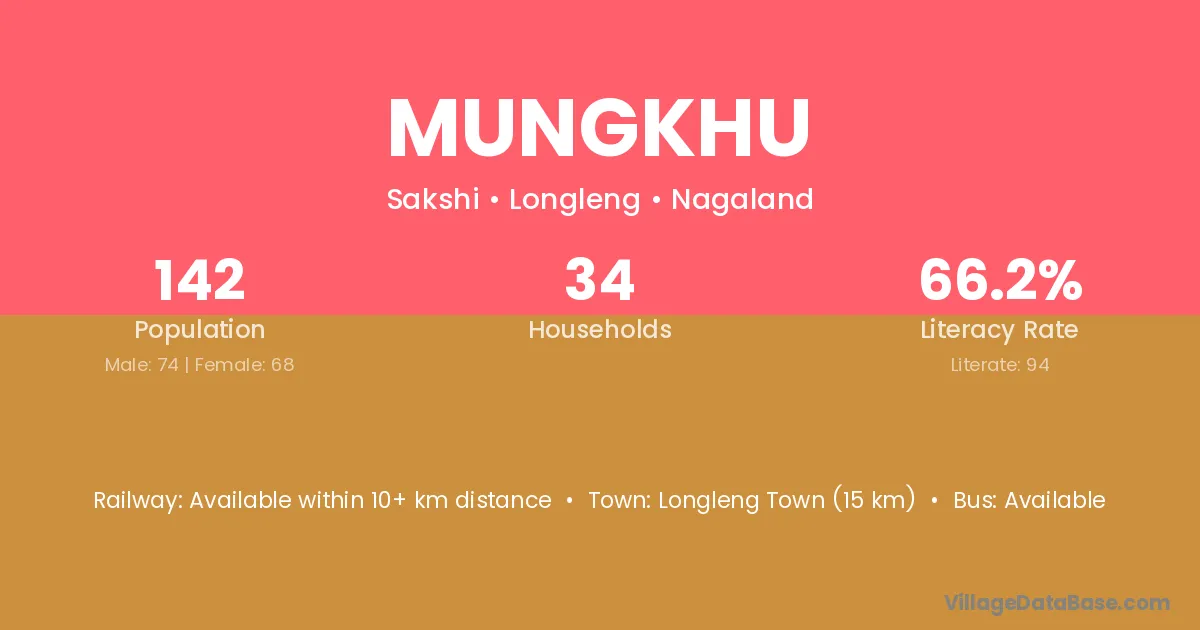 Mungkhu village has a total population of 142 people, of which 74 are males and 68 are females.