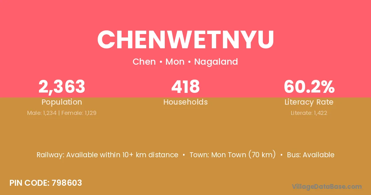 Chenwetnyu village has a total population of 2,363 people, of which 1,234 are males and 1,129 are females.