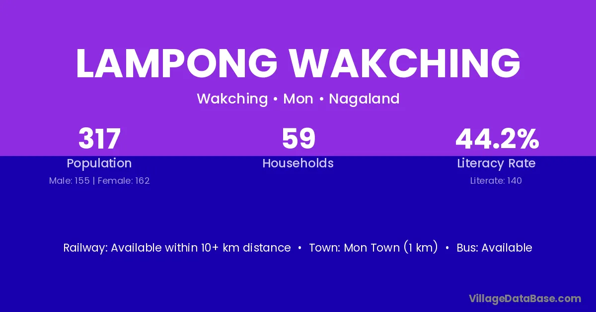 Lampong Wakching village has a total population of 317 people, of which 155 are males and 162 are females.