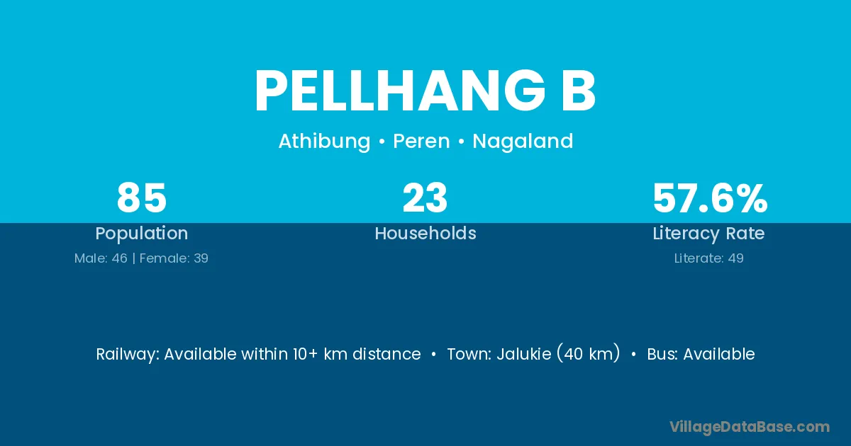 Jalukie (40 km) is the nearest town to Pellhang B village for major economic activities and is located approximately 40 km away.