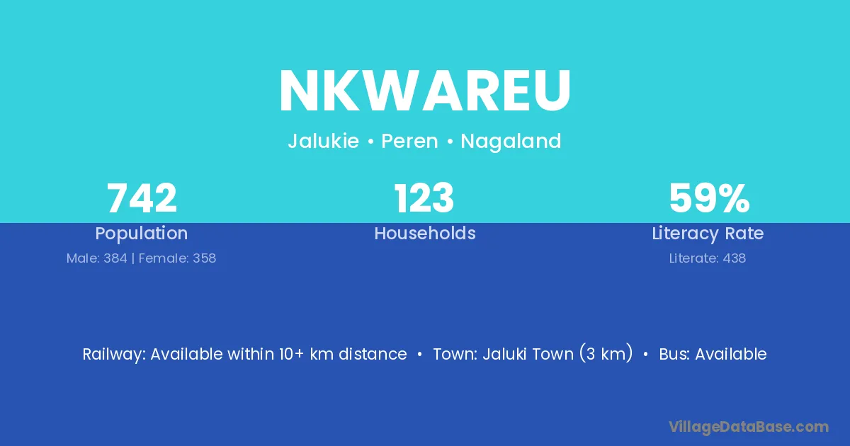 Nkwareu village has a total population of 742 people, of which 384 are males and 358 are females.
