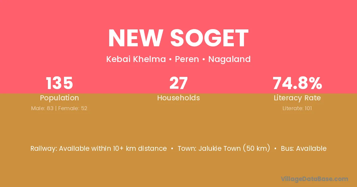 New Soget village has a total population of 135 people, of which 83 are males and 52 are females.