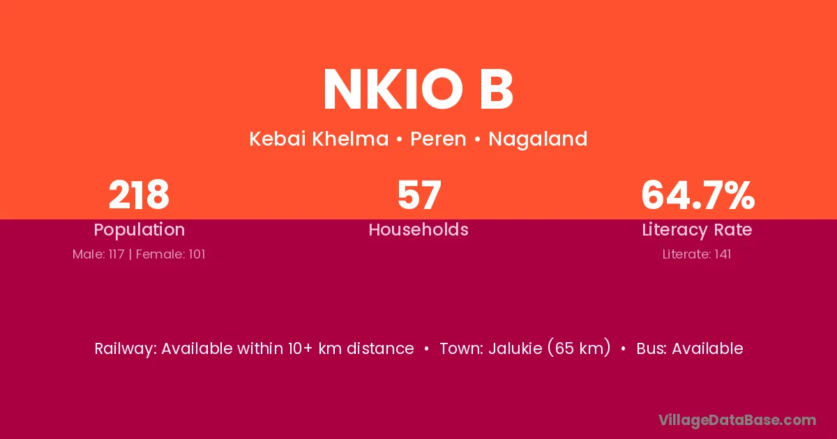 Nkio B village has a total population of 218 people, of which 117 are males and 101 are females.