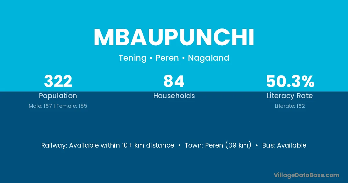 Mbaupunchi village has a total population of 322 people, of which 167 are males and 155 are females.