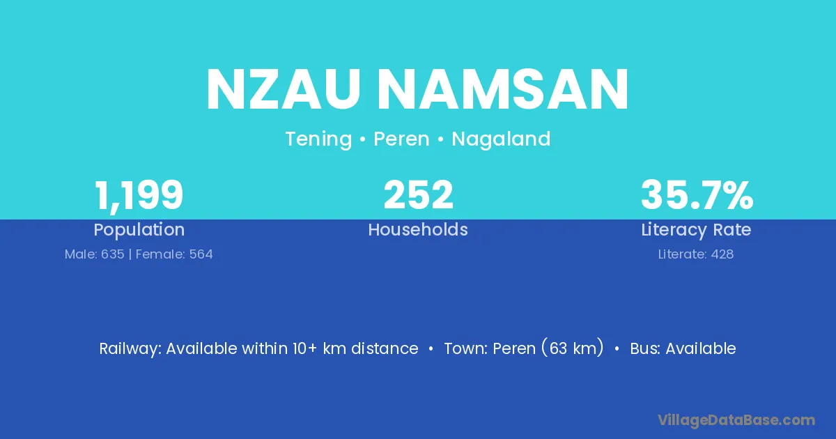 Nzau Namsan village has a total population of 1,199 people, of which 635 are males and 564 are females.