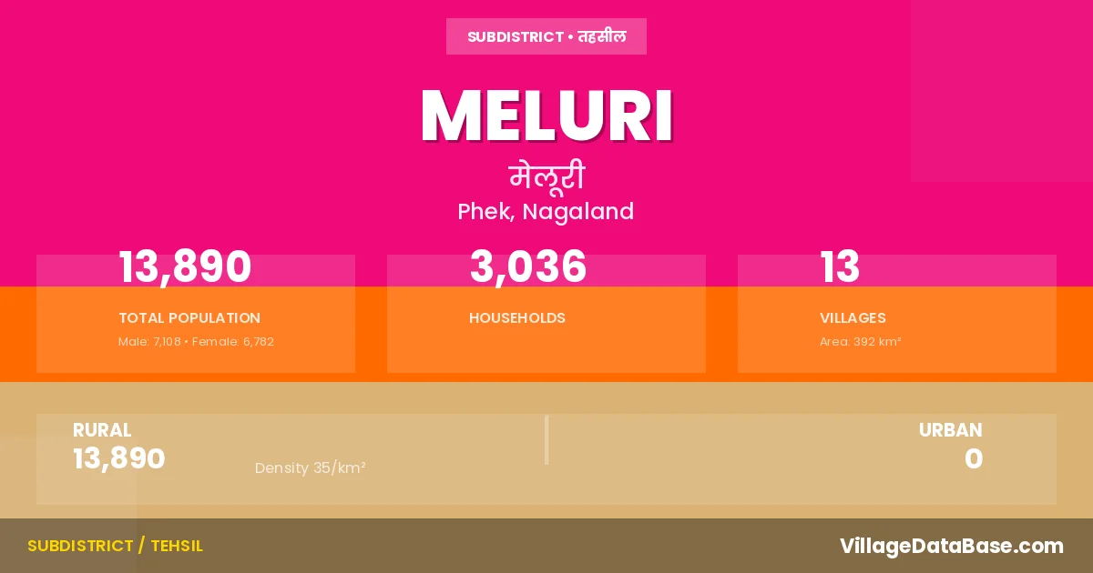 Meluri is a town and Circle in the Phek district of the Nagaland. In India, a Circle is a subdivision of a district responsible for the administration and revenue collection of a specific area within the district. Circles play a crucial role in the local governance structure, contributing significantly to the development and administration of their communities.