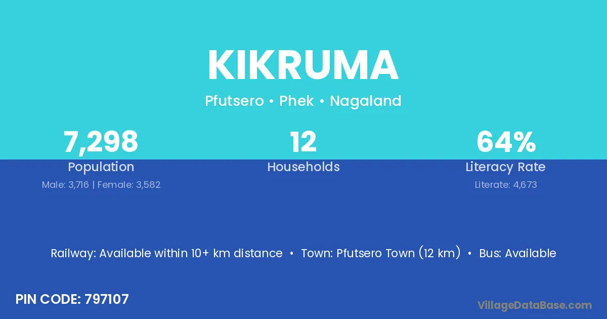 Pfutsero Town (12 km) is the nearest town to Kikruma village for major economic activities and is located approximately 12 km away.