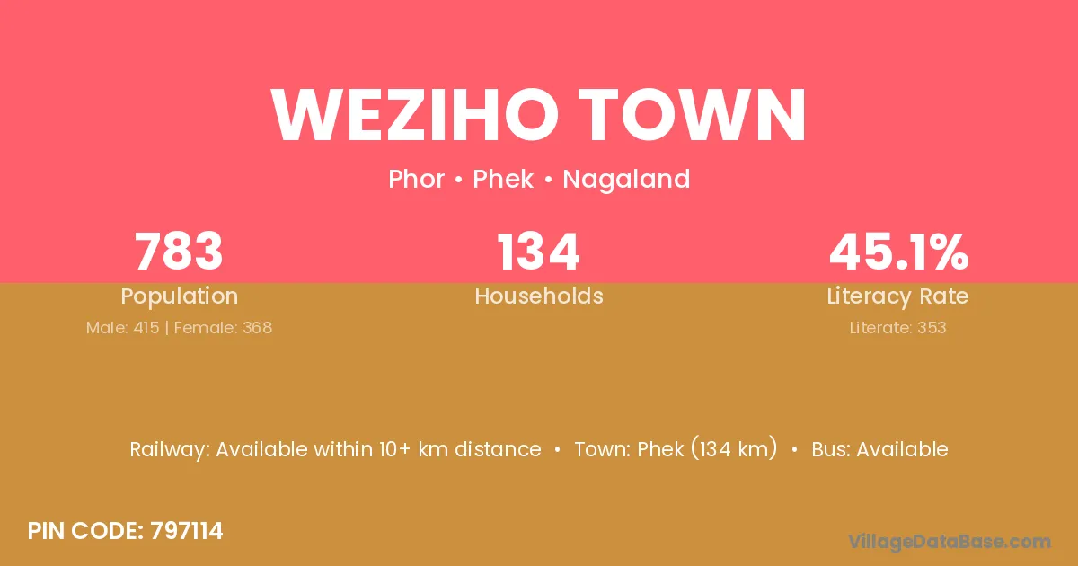 Weziho Town village has a total population of 783 people, of which 415 are males and 368 are females.