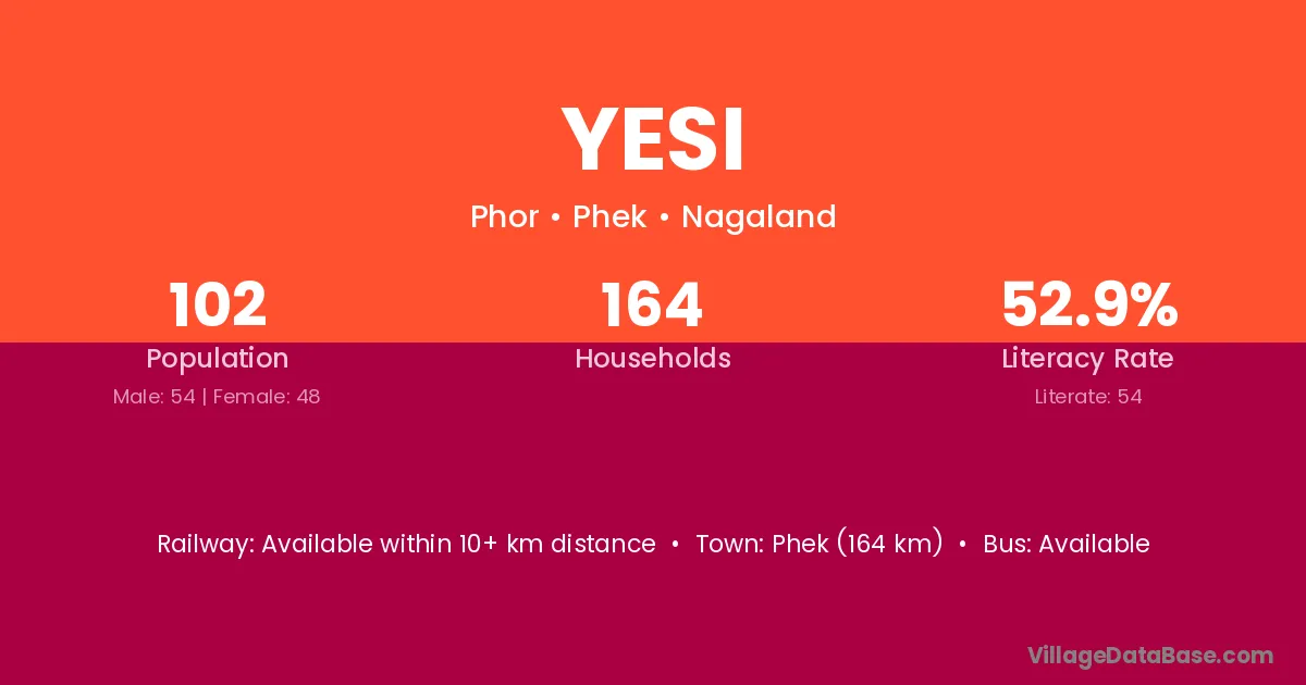 Phek (164 km) is the nearest town to Yesi village for major economic activities and is located approximately 164 km away.