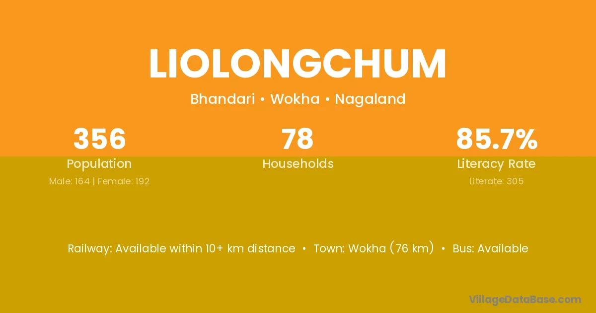 Wokha (76 km) is the nearest town to Liolongchum village for major economic activities and is located approximately 76 km away.