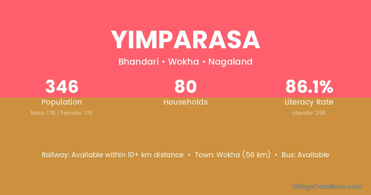 Wokha (56 km) is the nearest town to Yimparasa village for major economic activities and is located approximately 56 km away.