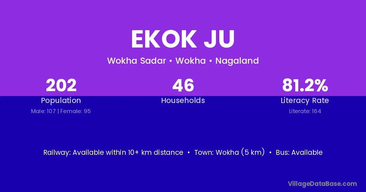 Wokha (5 km) is the nearest town to Ekok Ju village for major economic activities and is located approximately 5 km away.