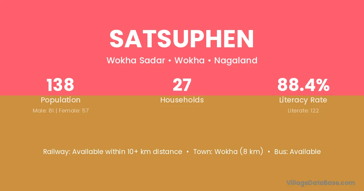 Wokha (8 km) is the nearest town to Satsuphen village for major economic activities and is located approximately 8 km away.