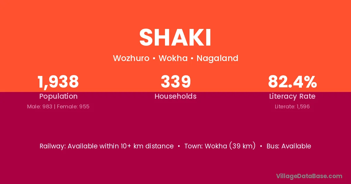 Wokha (39 km) is the nearest town to Shaki village for major economic activities and is located approximately 39 km away.
