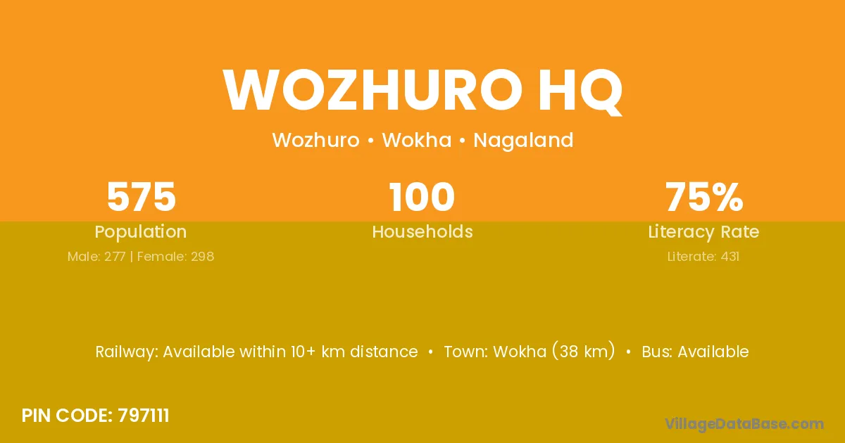 Wokha (38 km) is the nearest town to Wozhuro Hq village for major economic activities and is located approximately 38 km away.