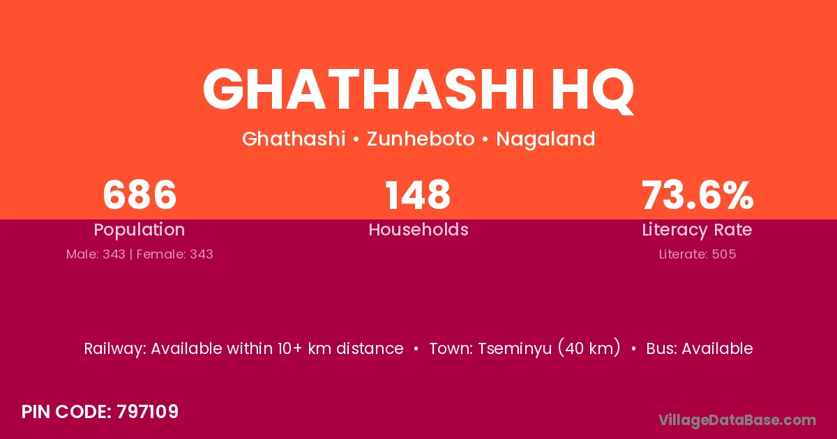 Ghathashi Hq village has a total population of 686 people, of which 343 are males and 343 are females.