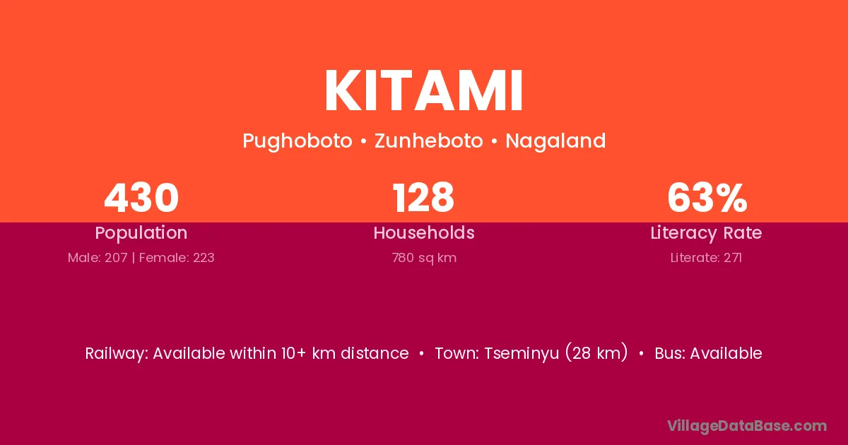 Kitami village has a total population of 430 people, of which 207 are males and 223 are females.