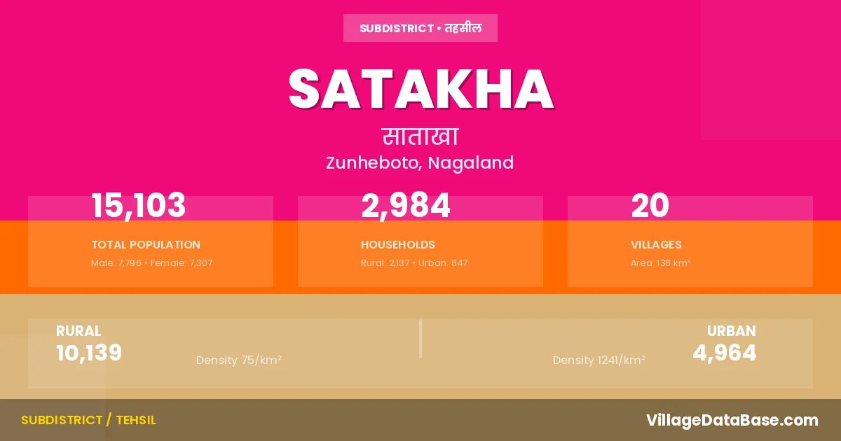 Satakha is a town and Circle in the Zunheboto district of the Nagaland. In India, a Circle is a subdivision of a district responsible for the administration and revenue collection of a specific area within the district. Circles play a crucial role in the local governance structure, contributing significantly to the development and administration of their communities.
