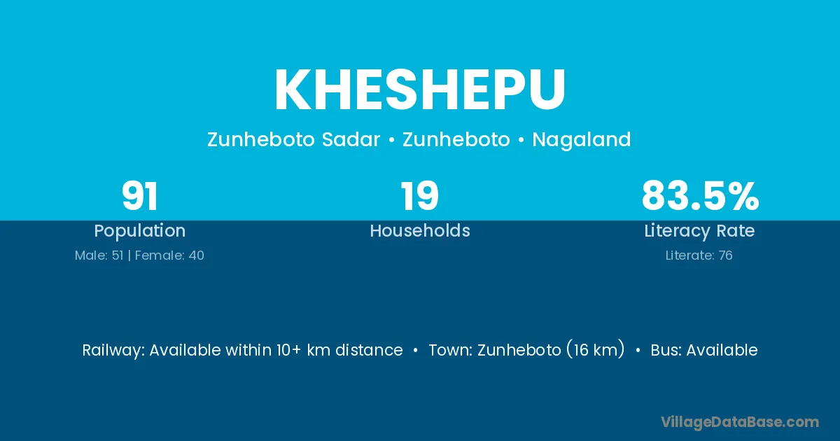 Zunheboto (16 km) is the nearest town to Kheshepu village for major economic activities and is located approximately 16 km away.