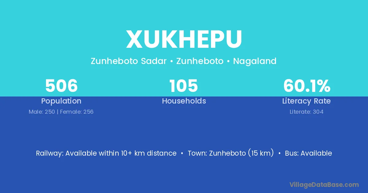 Zunheboto (15 km) is the nearest town to Xukhepu village for major economic activities and is located approximately 15 km away.