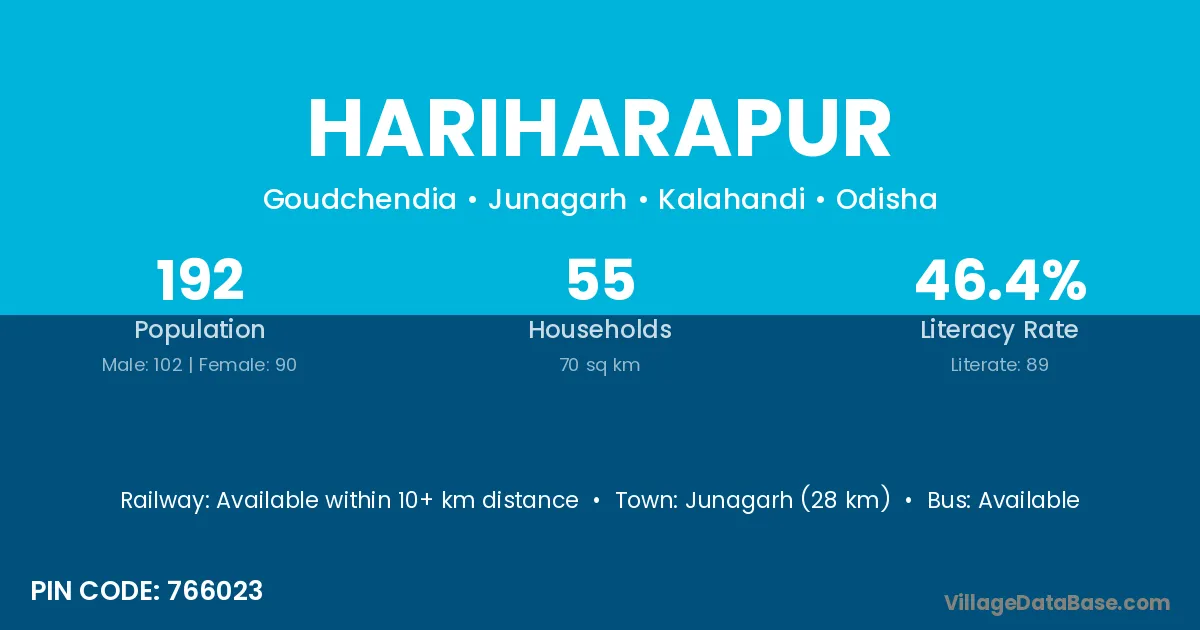 Athamallik (7 km) is the nearest town to Hariharapur village for major economic activities and is located approximately 7 km away.
