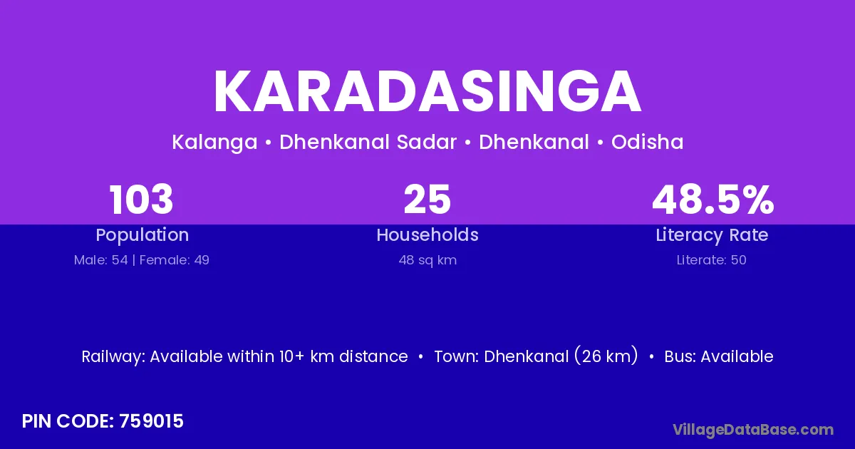 Athamallik (20 km) is the nearest town to Karadasinga village for major economic activities and is located approximately 20 km away.