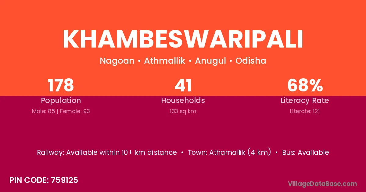 Athamallik (4 km) is the nearest town to Khambeswaripali village for major economic activities and is located approximately 4 km away.