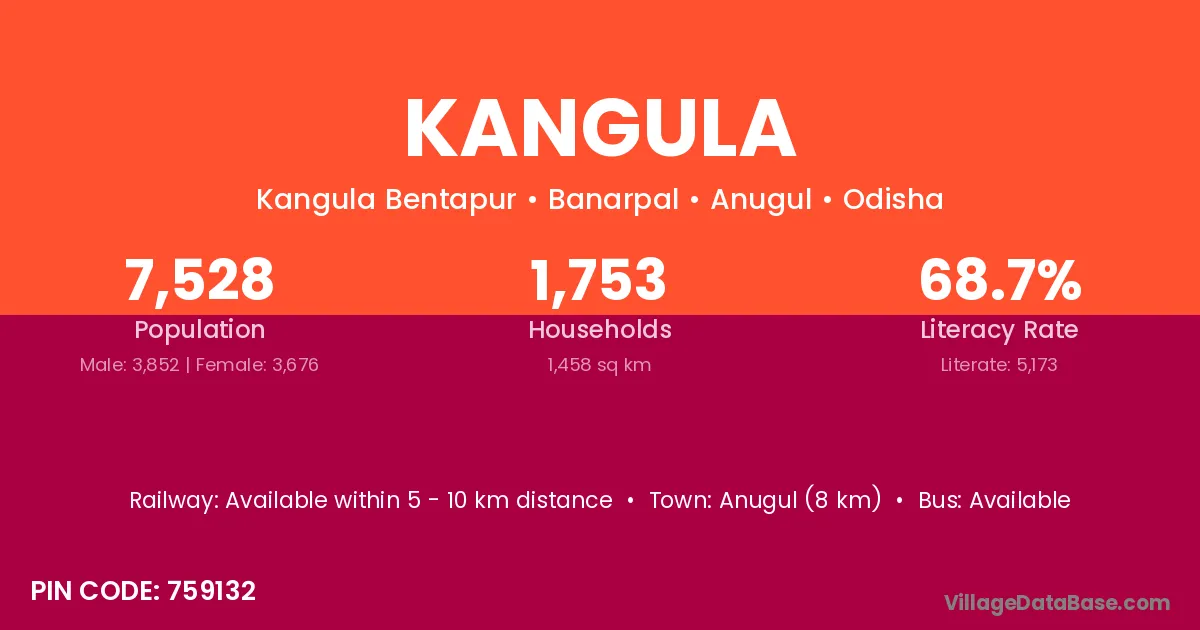 Anugul (8 km) is the nearest town to Kangula village for major economic activities and is located approximately 8 km away.