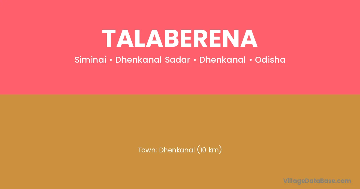 Anugul (23 km) is the nearest town to Talaberena village for major economic activities and is located approximately 23 km away.