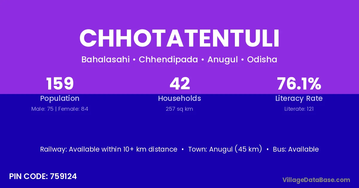 Chhotatentuli village has a total population of 159 people, of which 75 are males and 84 are females.