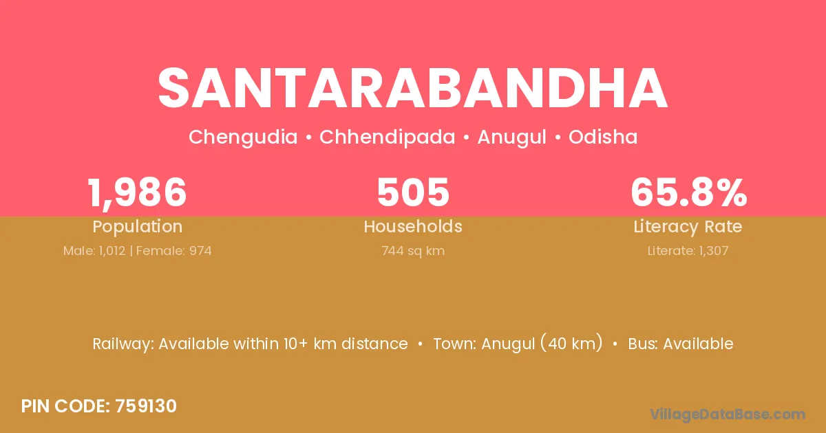 Anugul (40 km) is the nearest town to Santarabandha village for major economic activities and is located approximately 40 km away.