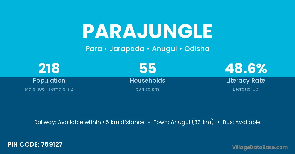 Anugul (33 km) is the nearest town to Parajungle village for major economic activities and is located approximately 33 km away.