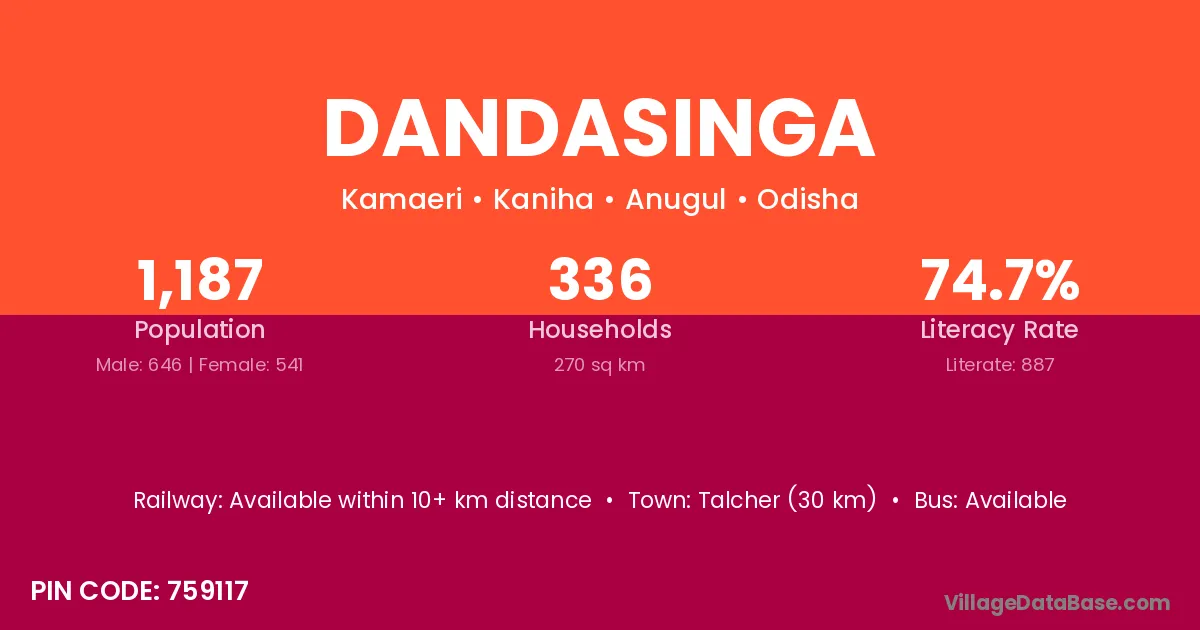 Dandasinga village has a total population of 1,187 people, of which 646 are males and 541 are females.