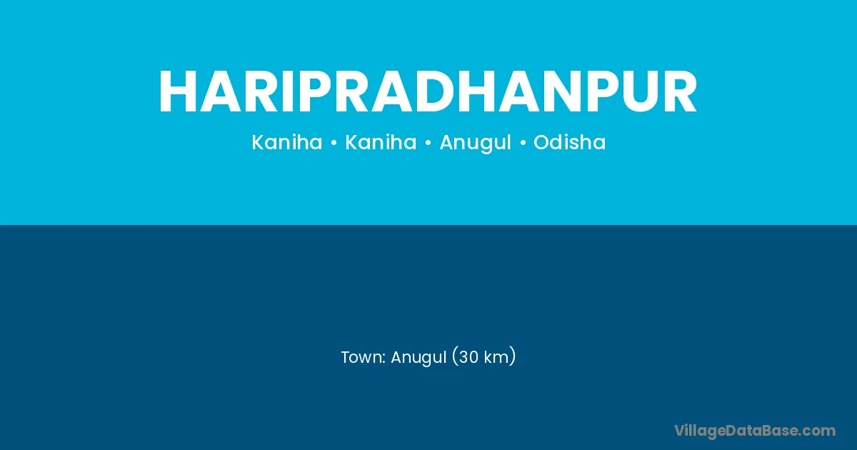 Haripradhanpur village is located in the Kaniha Tehsil of the Anugul district in Odisha .
