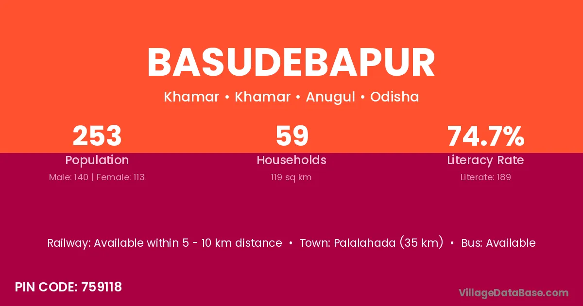 Palalahada (35 km) is the nearest town to Basudebapur village for major economic activities and is located approximately 35 km away.