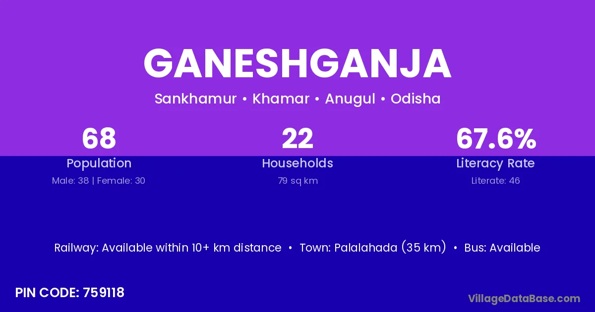 Ganeshganja village is located in the Khamar Tehsil of the Anugul district in Odisha .