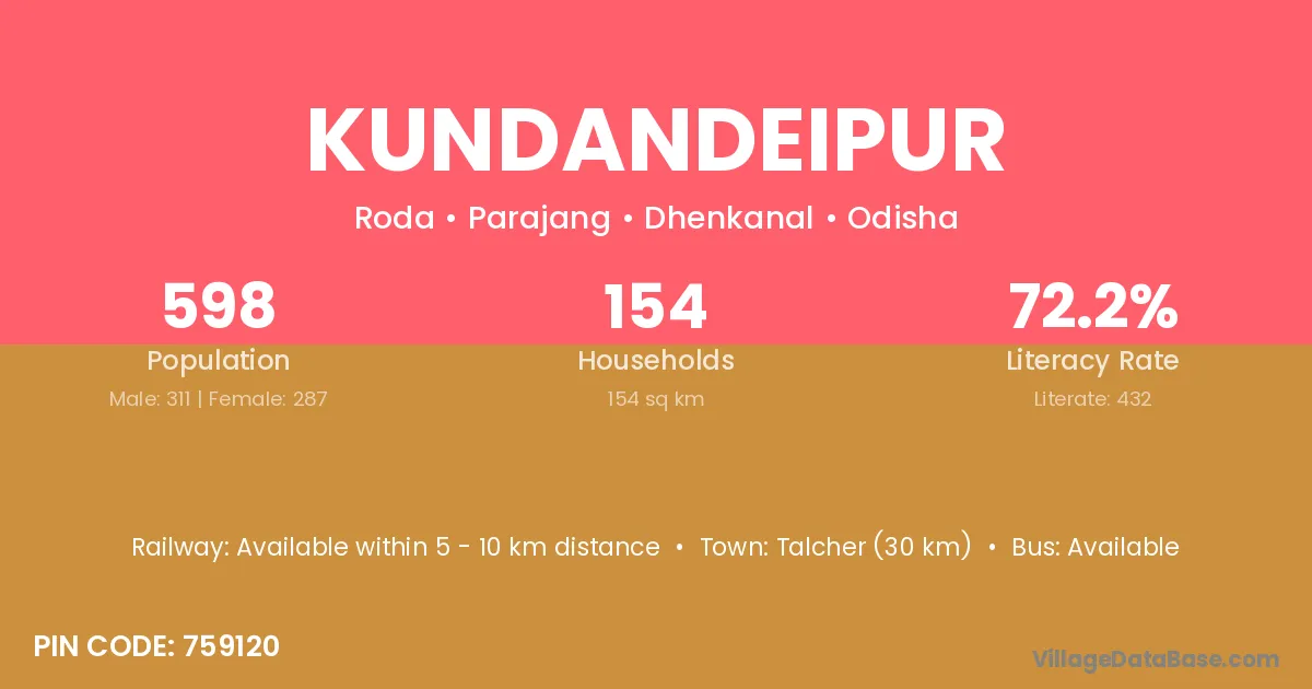 Kundandeipur village is located in the Khamar Tehsil of the Anugul district in Odisha .
