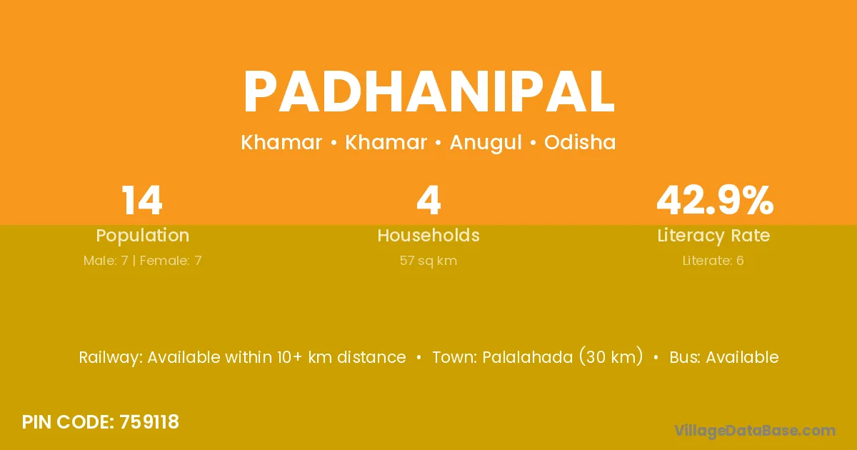 Palalahada (30 km) is the nearest town to Padhanipal village for major economic activities and is located approximately 30 km away.