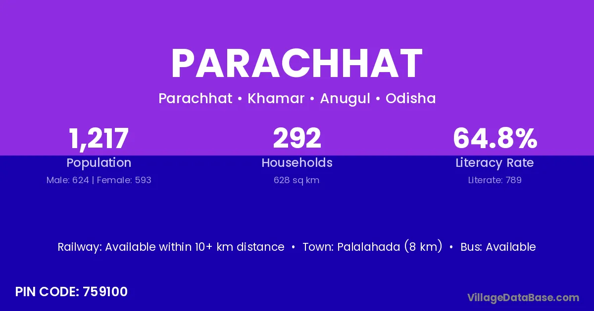 Parachhat village has a total population of 1,217 people, of which 624 are males and 593 are females.