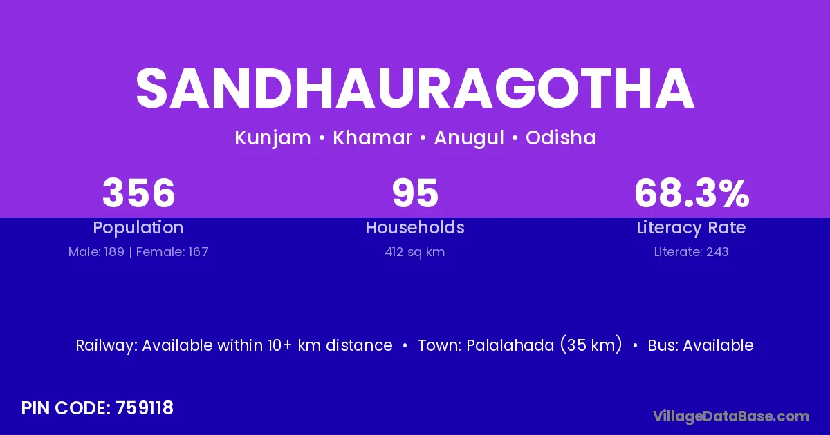 Palalahada (35 km) is the nearest town to Sandhauragotha village for major economic activities and is located approximately 35 km away.